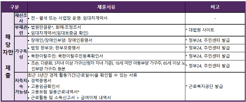 ※ 단, 기초생활수급자, 차상위계층, 기준 중위소득 50% 이하자는 현재 근로활동 중이며 근로, 사업소득이 월 10만 원 이상 발생