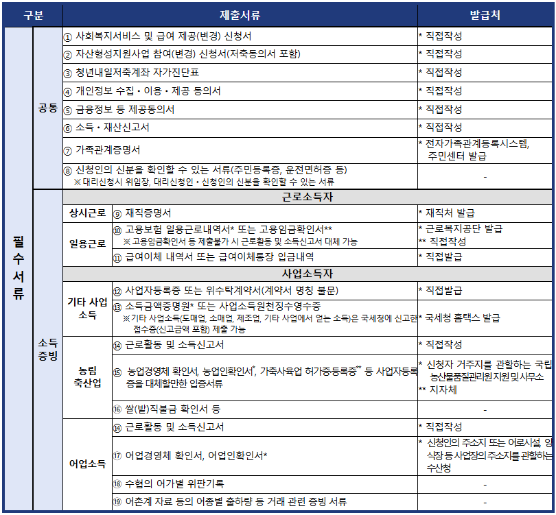 📌 청년내일저축계좌 신청 시 제출서류목록