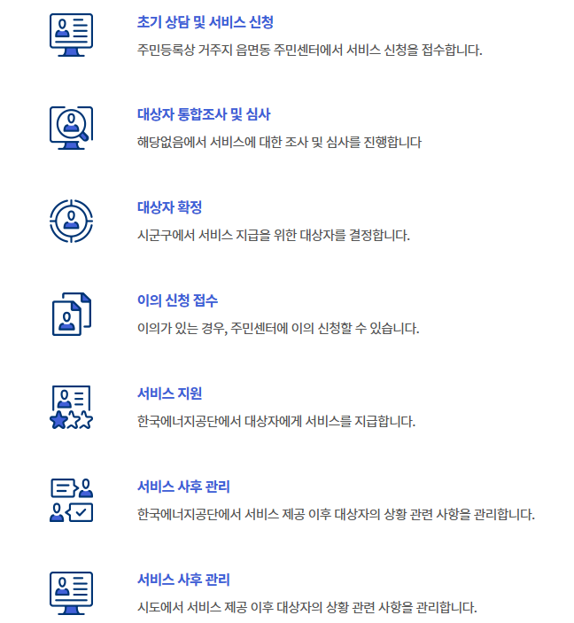 에너지바우처의 처리프로세스는 아래와 같습니다.