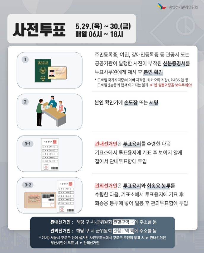 📌 투표 장소: 전국 읍·면·동에 설치된 사전투표소 어디서나 가능