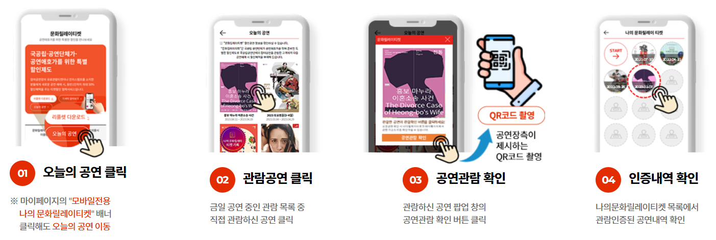 문화릴레이티켓 할인을 받기 위한 인증방법은 아래와 같습니다.