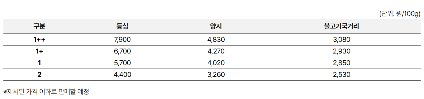 📌 인기 등급&부위 조기 매진 가능성 높으므로 초기 3일 내 구매 추천